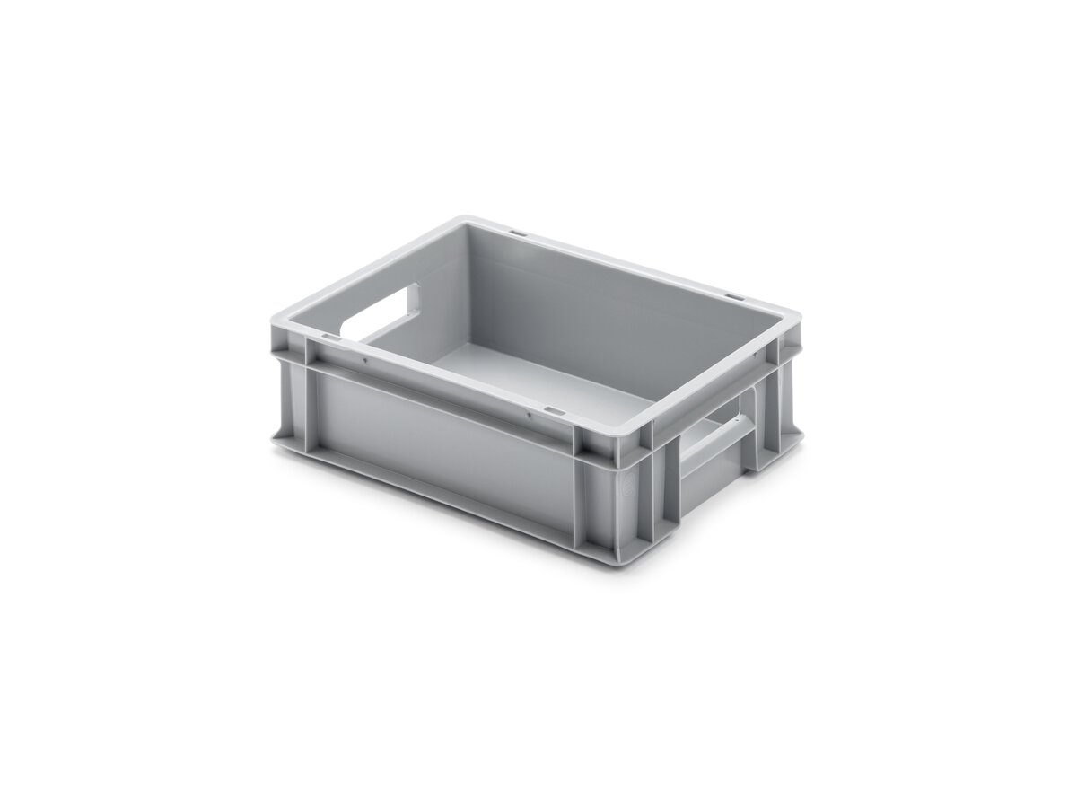 Boden u. Seiten geschlossen, Farbe: hellgrau, PP-Neuware, lebensmittelecht, 2 Durchgriffe, IM: 366 x 266 x 115 mm Traglast/Stapellast: 40/150 kg., Inhalt L: 11 Die geschlossene Industrie-Kunststoffbehälter für alle Anwendungsbereiche. Einfaches, geradliniges Design und hohe Stabilität machen die Kunststoffbehälter universell einsetzbar. Gefertigt werden die Behälter aus hochwertigem Polypropylen Copolymer (PPC), sind temperaturunempfindlich von -40°C bis +80°C und 100% Lebensmittelecht.
