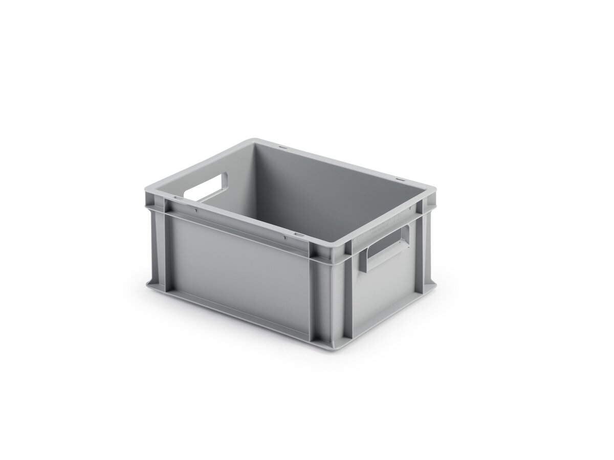 Boden u. Seiten geschlossen, Farbe: hellgrau, PP-Neuware, lebensmittelecht, 2 Durchgriffe, IM: 366 x 266 x 172 mm Traglast/Stapellast: 30/150 kg., Inhalt L: 16 Die geschlossene Industrie-Kunststoffbehälter für alle Anwendungsbereiche. Einfaches, geradliniges Design und hohe Stabilität machen die Kunststoffbehälter universell einsetzbar. Gefertigt werden die Behälter aus hochwertigem Polypropylen Copolymer (PPC), sind temperaturunempfindlich von -40°C bis +80°C und 100% Lebensmittelecht.