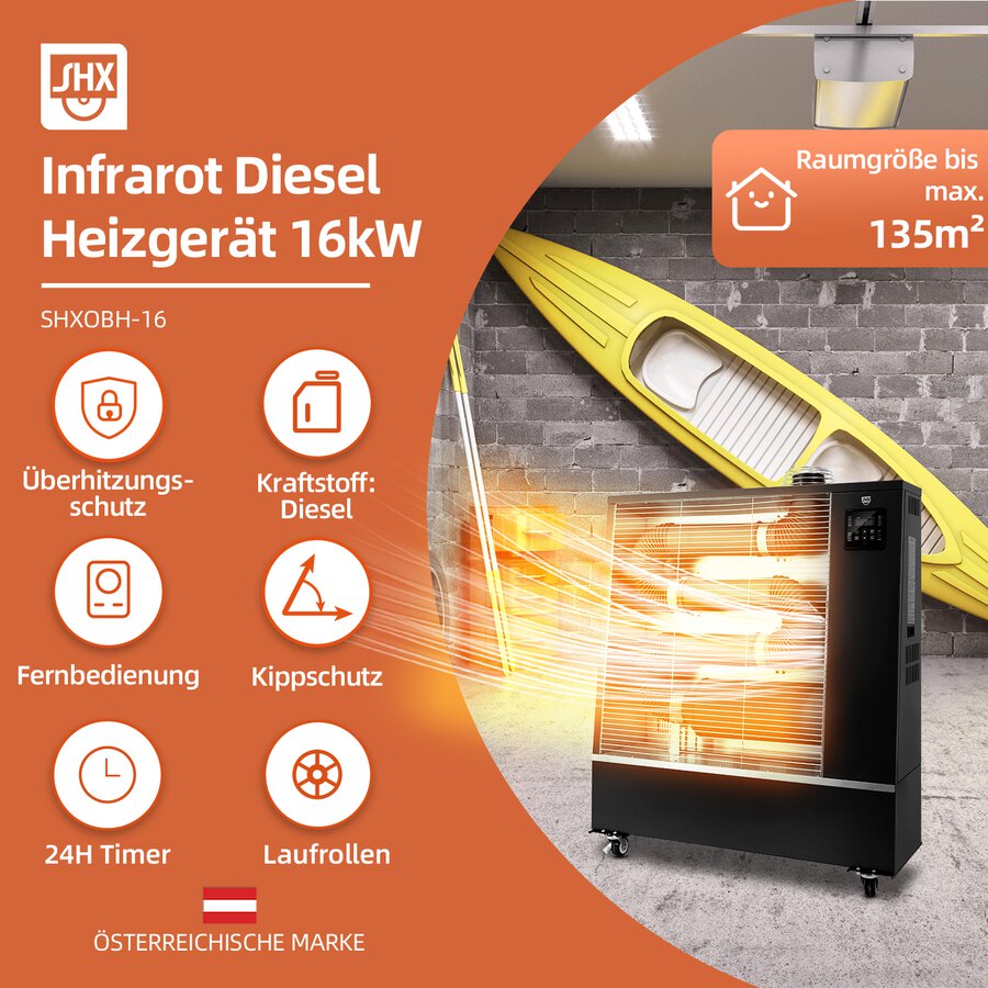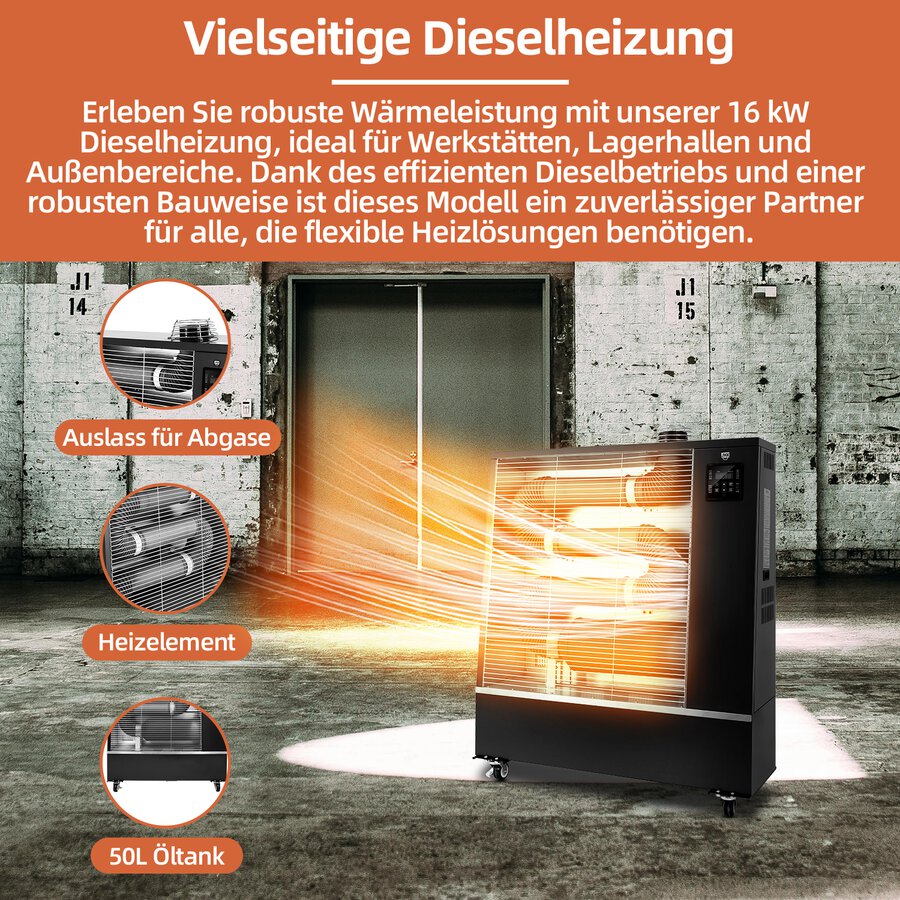 Mit einer beeindruckenden Ausgangsleistung von 16 kW bieten diese Dieselheizer effiziente und zuverlässige Heizleistung für verschiedene Anwendungen.