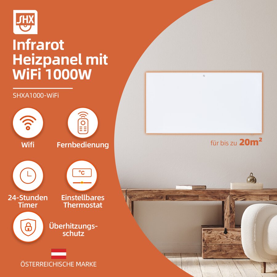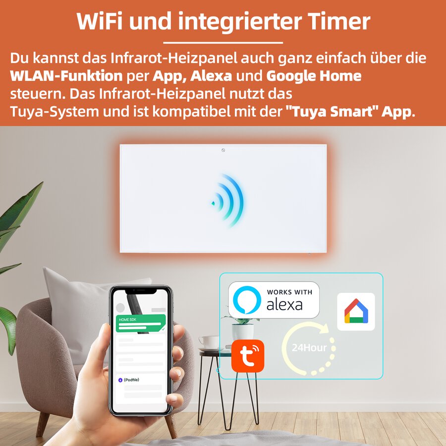Das Paneel kann auch mit der Wifi-Funktion problemlos über die mobile APP, Alexa und Google Home bedient werden. Das SHX A-Wifi-Modell basiert auf dem Tuya-System und funktioniert mit der "Tuya Smart"-App.