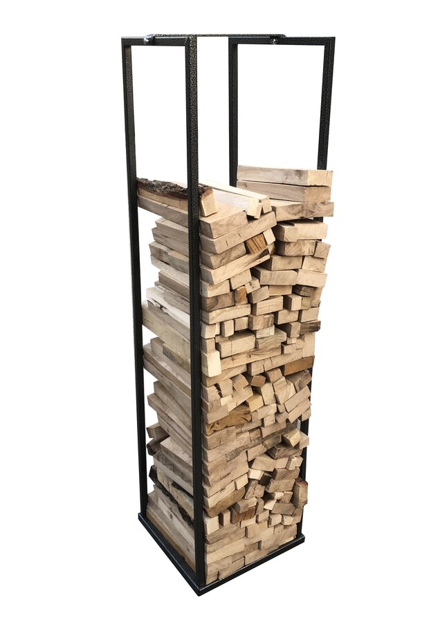 ein schönes Dekorationsstück mit hohem praktischen Nutzen in stilvollem Anthrazit-Schwarz. Dieses Kaminholzregal ist ideal zum Stapeln von Holzscheiten aller Formen