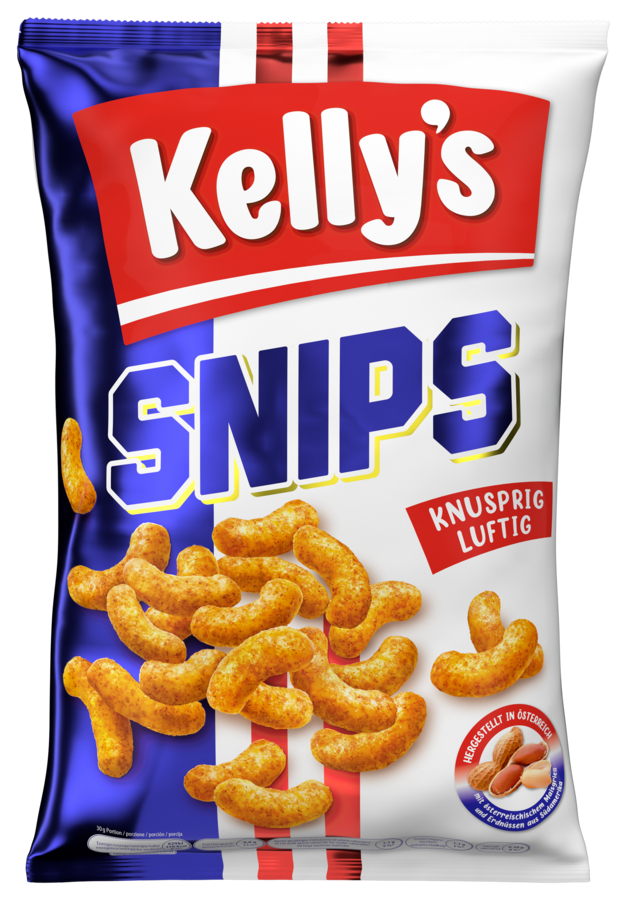 Mais und Erdnüsse - ein Herz und eine Seele. Kelly‘s Snips - mit noch mehr Erdnüssen und noch mehr Geschmack. Die leichteste Form Erdnüsse zu genießen. Original Kelly‘s Erdnüsse garantieren den vollen Knabbergenuss! Knistern bis zum letzten Snips.