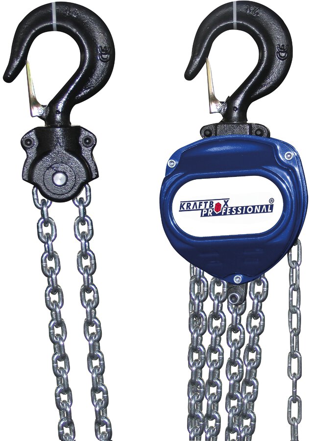 • Material: Stahl • Nennhubkapazität: 1000 kg • Hubhöhe: 2,5 m • Lastkette: 6 mm x 3 m (Dm. x Länge) • Handkette: 4.8 mm x 2,5 m (Dm. x Länge) • Extrem niedrige Bauweise • Geschlossenes, robustes, pulverbeschichtetes Metall-Gehäuse • Integriertes Bremssystem für Lastsicherung in jeder Hubhöhe • Drehbarer Last- und Aufhängehaken mit Sicherheitsbügel, GS-geprüft