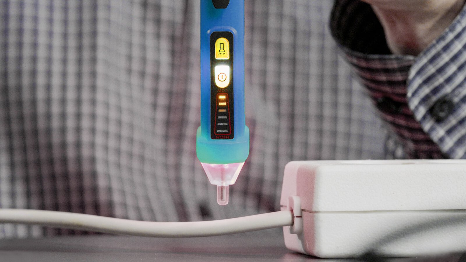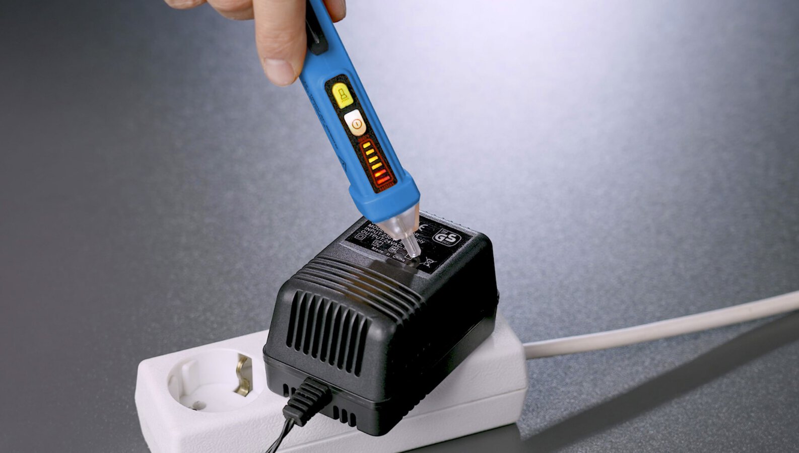 zur einpoligen Phasenprüfung, Auffinden von spannungsführenden Leitungen sowie Bruchstellen in Kabeln und defekten Lampen in Lichterketten etc. Messbereiche: Wechselspannung: 12 - 1.000 V, Frequenzmessung: 50 Hz - 60 Hz