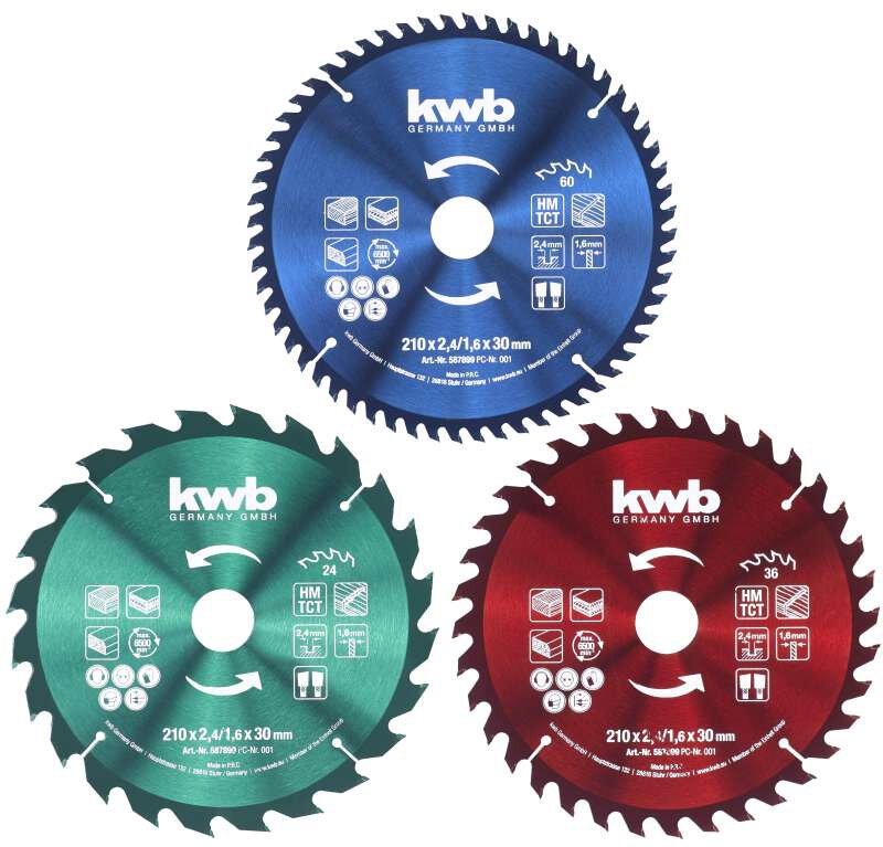 Von Grund auf clever ausgestattet! Diese 3-teiligen Kreissägeblattsätze sind die ideale Grundausstattung für die Kreissäge. Jedes Set enthält jeweils ein Sägeblatt für eine feine, eines für eine mittlere und eines für eine grobe Schnittgüte. Besonders praktisch: Alle Blätter sind unterschiedlich eingefärbt – so ist die Schnittgüte jedes Blattes auf einen Blick erkennbar. So unterschiedlich die Farbgebung, so gleich die Leistungsfähigkeit: Alle Blätter der Sets haben Hartmetallzähne, die für besondere Robustheit und Langlebigkeit sorgen. Die Zähne weisen eine positive Zahnstellung auf und arbeiten sich damit zuverlässig durch diverse Materialien. Die Wechselzahnstellung ermöglicht das Schneiden in Längs- und Querrichtung, was das Arbeiten mit den Sägeblättern vereinfacht. Alle Sets enthalten Reduzierringe. Zu jedem 3-teiligen Kreissägeblattsatz gehört ein praktischer Kunststofftray, in dem die Kreissägeblätter sicher aufbewahrt werden können. Er bietet außerdem weiteren Platz für bereits vorhandene Sägeblätter. Die Kreissägeblätter dieser Sets können verwendet werden mit den gängigen Handkreissägen sowie Kapp- und Gehrungssägen.