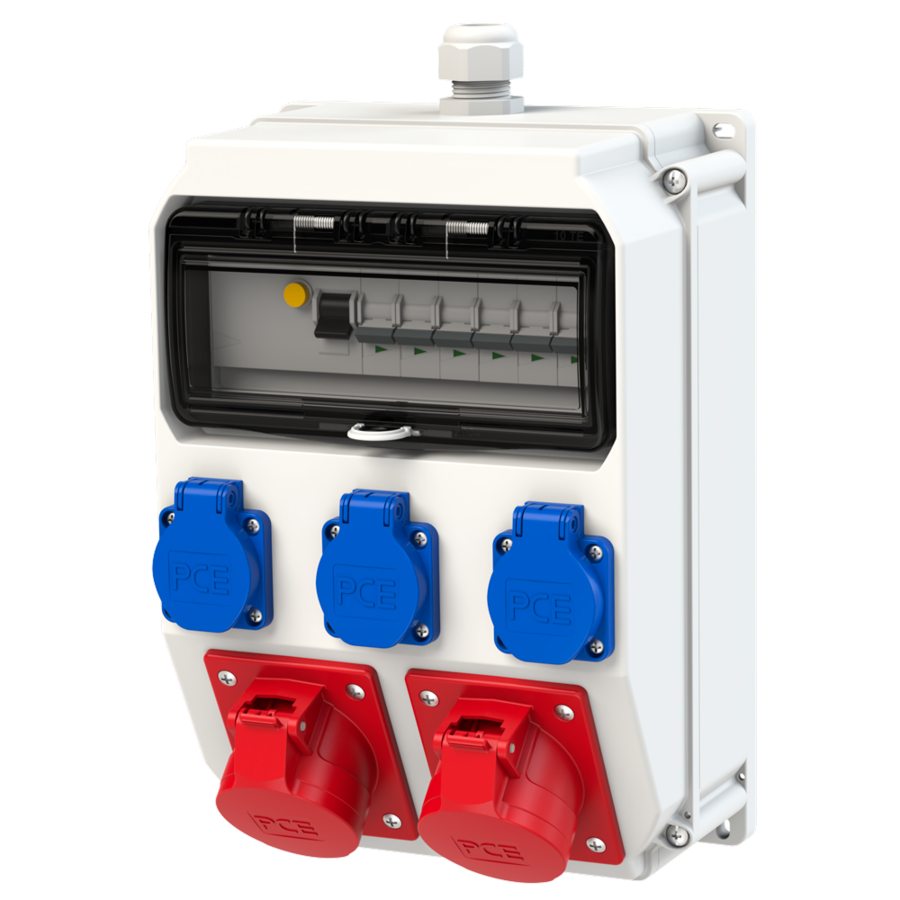 2xCEE-Steckdose 16A 5p 400V abgesichert ü. 1xLS 16A 3p C