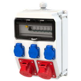 3xSK-Steckdose 16A 250V IP54 abgesichert ü. 3xLS 16A 1p C