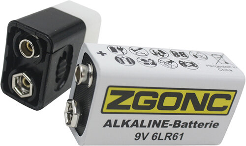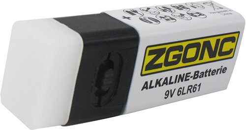 1 weißes LED und 1 gelbes LED (umschaltbar), Aufsatz für alle 9 V-Blockbatterien