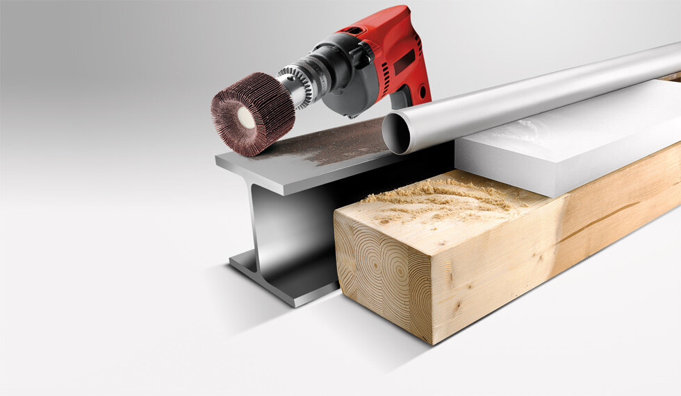 Der feine kwb Lamellenschleifer ist mit Korund-Korn bestückt. Der Korund sorgt für eine hohe Abtragleistung. Der stirnbündige Schleifer ist ideal zum Bearbeiten von Stirn- und Seitenflächen sowie runden Gegenständen aus Holz, Metall und Kunststoff geeignet.