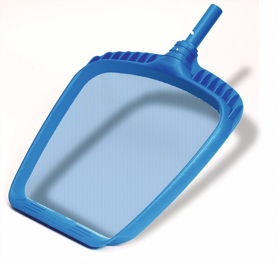 Aufsteck-Premium-Laubkescher mit flachem Netz und mit verstärktem Kunststoffrahmen zum Befestigen an einer Alu-Teleskopstange. Zum Entfernen von Schmutzpartikeln oder Blättern auf der Wasseroberfläche des Pools oder Whirlpools.