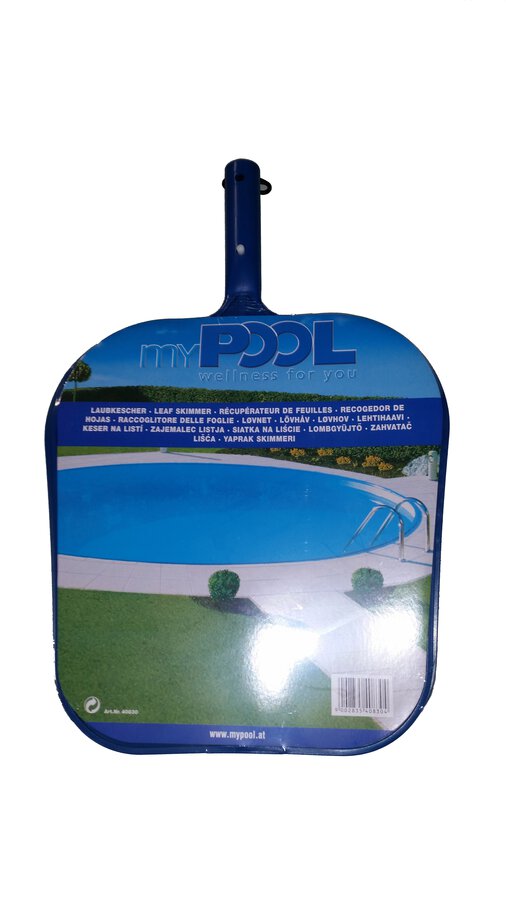Aufsteck-Laubkescher mit flachem Netz. Zur Befestigung an einer Alu-Teleskopstange. Zum Entfernen von Schmutzpartikeln oder Blättern auf der Wasseroberfläche des Pools oder Whirlpools.
