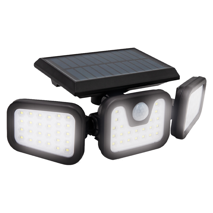 Panta Trio Solar ist ein Solar-Hochleistungs-Multifunktionslicht für ultrahelles Licht im Außenbereich! Panta Trio Solar verfügt über einen hochsensiblen Bewegungssensor welcher Bewegungen mit bis zu 7,5 Meter Reichweite erfasst! 74 hochwertige LEDs beleuchten gleichzeitig mit gewaltiger Leuchtkraft bis zu 100m² Ihres Zuhauses nahezu taghel und das alles nur mit der geballten Kraft der Sonne.