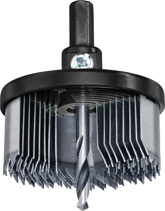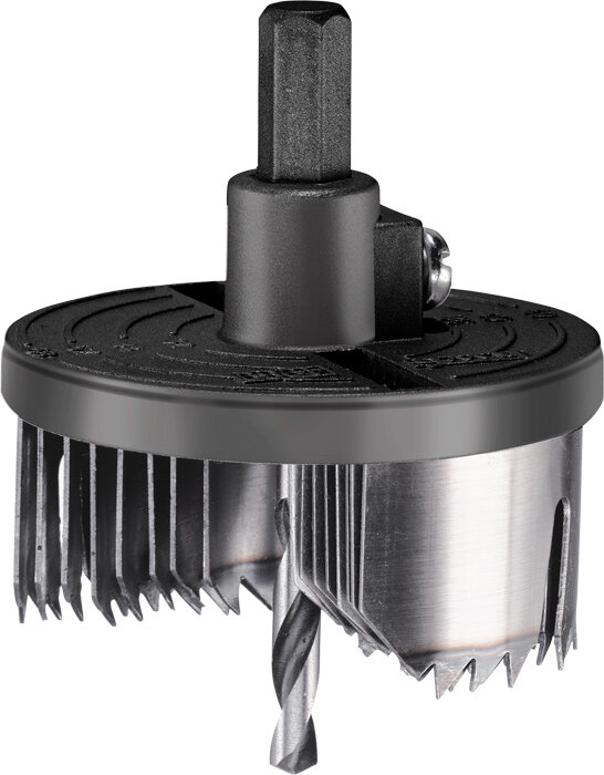 je 1 Lochsäge: 25 / 32 / 38 / 44 / 51 / 59 / 63 und 6468 mm, speziell für Akku-Maschinen geeignet - mehr Leistung bei geringerem Akkuverbrauch!