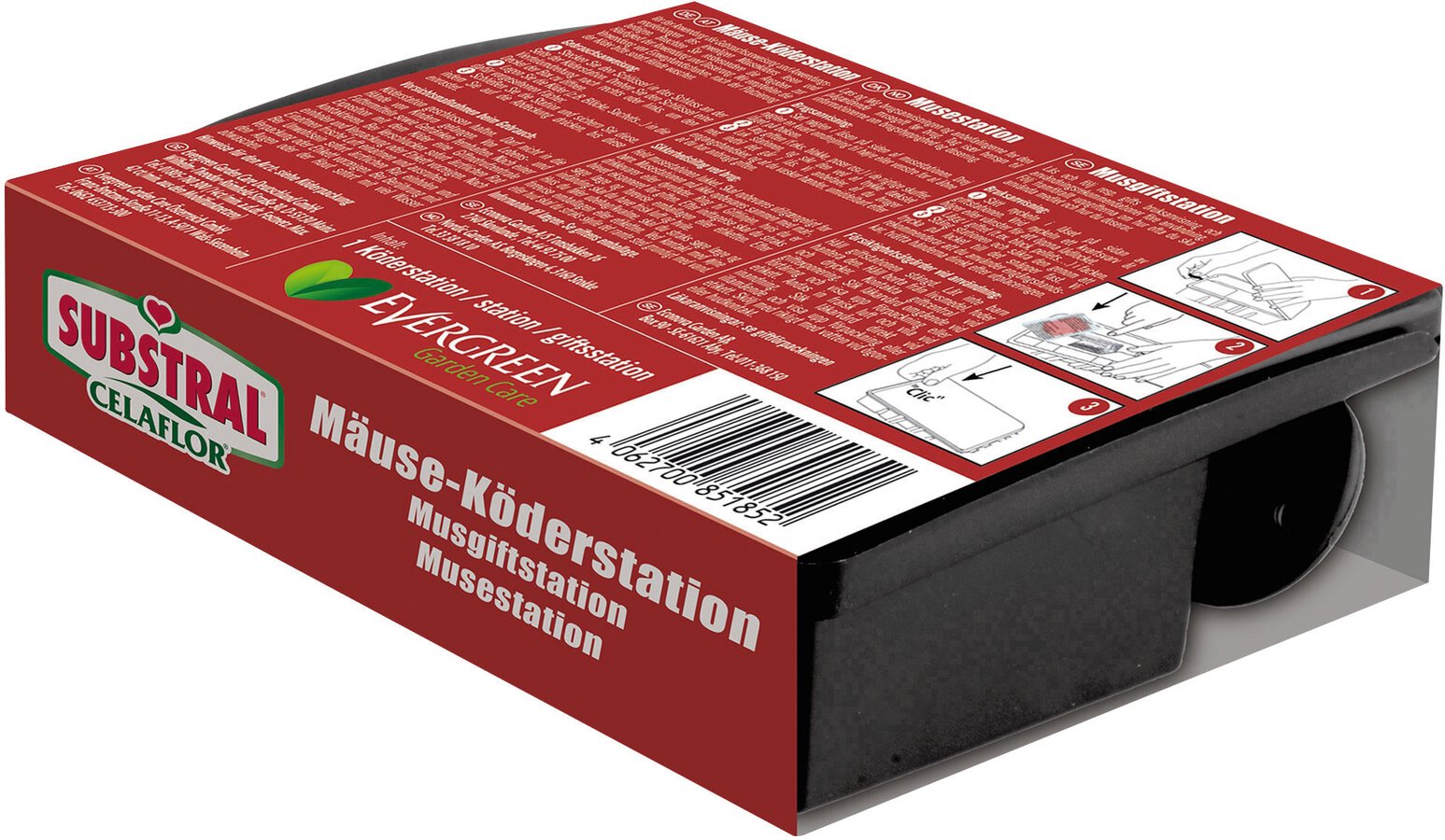 schützt vor versehentlicher Aufnahme durch Kinder, Haustiere und Nicht-Zielorganismen, stabiles Kunststoffgehäuse mit einfachem Zugang für Mäuse, mit Schlüssel zum sicheren Verschließen