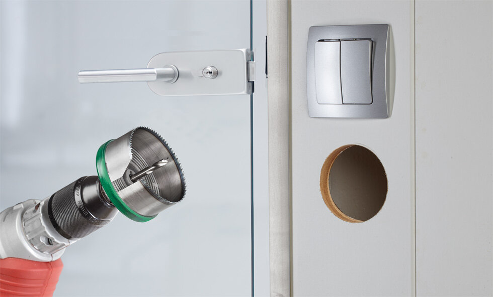 Die 3-teilige kwb Mehrkranzlochsäge mit Zentrierbohrer verfügt über einen Sechskantschaft. Der schwere Trägerteller der Lochsäge besteht aus Alu-Druckguss. Die drei Sägekränze des Kreisschneiders mit den Ø 60, 68 und 74 mm sind aus gehärtetem Federstahl mit induktiv gehärteten Zahnspitzen. Die Bohrkrone ist mit dem kwb-Farbleitsystem „grün“ für den Einsatz in Holz, kunststoffbeschichtete Hölzer, Hartholz, Spanplatten, Gipskarton, Leichtbauplatten, Kunststoff und Kupfer versehen.