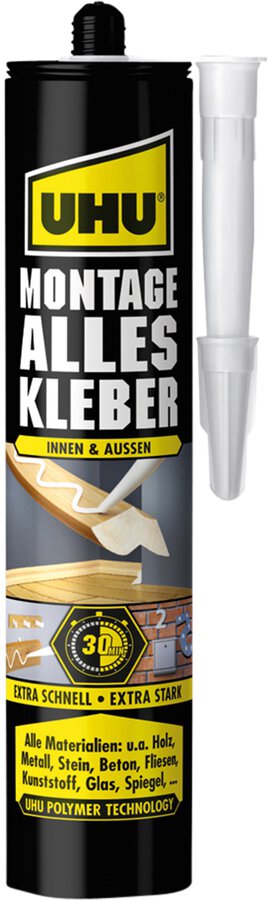 universeller Montagekleber für alle Fixierfälle, bei denen nicht gebohrt und geschraubt werden soll
