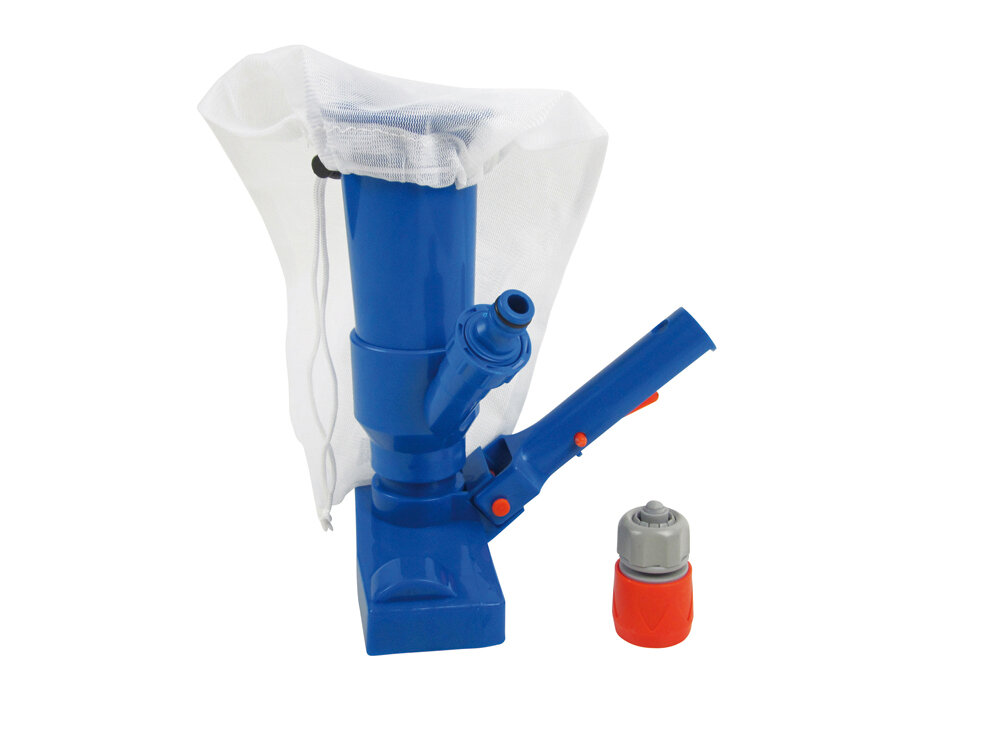 saugt mit Wasserdruck - ohne Strom - nach dem Venturi-Prinzip!!! Gartenschlauch anschließen, Filtersack befestigen, Hahn aufdrehen und mit der Reinigung beginnen, mit dem Saugschlauch-Adapter über die Filteranlage als normaler Bodensauger verwendbar