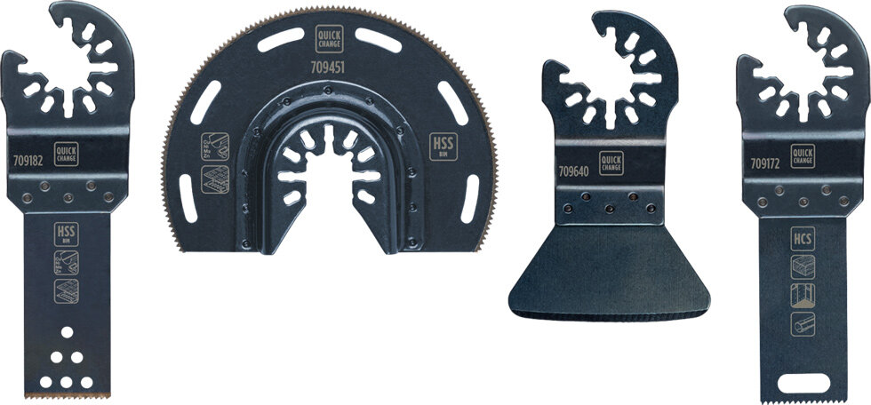 Das 4-teilige Multitool-Set ist ideal für Profis und Heimwerker. Enthält Bi-Metall-Tauchsägeblätter für präzise Schnitte, ein HCS-Tauchsägeblatt für Holzschnitte und einen starr stehenden Schaber. Passend für alle gängigen Multitools. Strapazierfähige schwarze Lackierung.