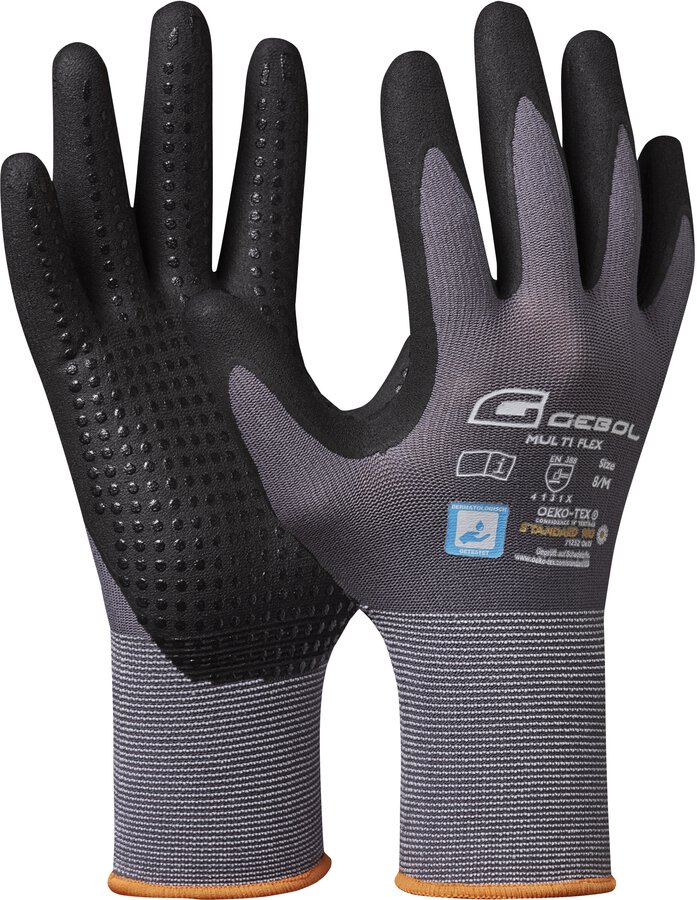 nahtloser Handschuh mit Nitril-Noppen, beständig gegen Öle und Fette, sicherer Griff - auch bei glatten Gegenständen, sehr gutes Tastgefühl, atmungsaktiv, dermatologisch getestet