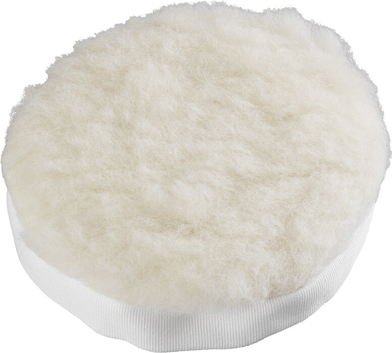 Die kwb Polierhaube aus gewebter Lammwolle verfügt über eine Spannschnur zur Befestigung auf handelsüblichen Stütztellern.