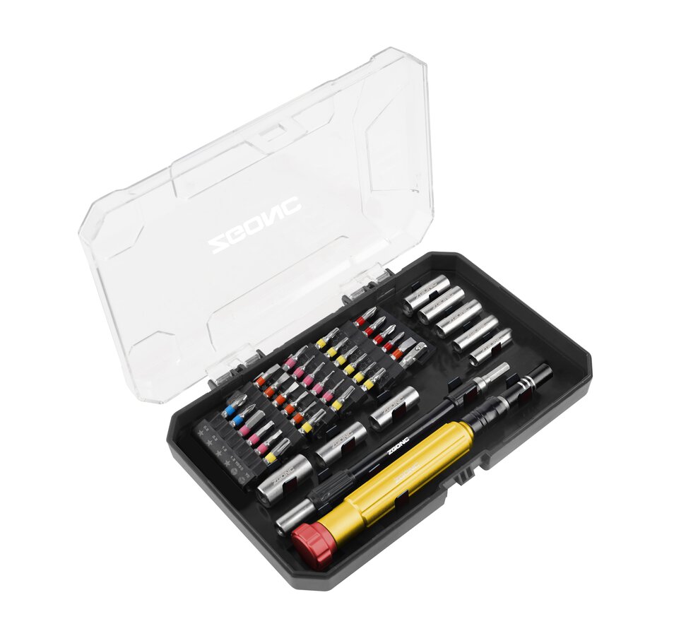 - 8 Steckschlüsseleinsätze: 3,0, 3,5, 4,0, 4,5, 5,0, 5,5, 6,0, 7,0 mm