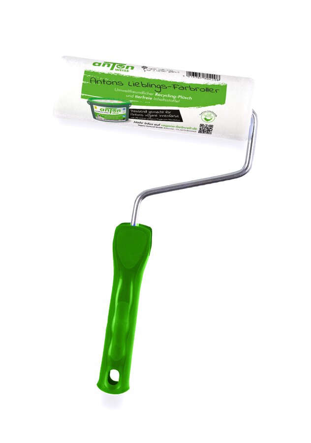anTon Premium Farbroller für den perfekten Farbanstrich und ein streifenfrei, glattes und harmonisches Oberflächenbild. 18cm Farbwalze. Mikrofaser für Wände und Decken. Raufaser, Gipskarton etc. Floorhöhe 15mm. Ergonomischer Griff für ein einfaches Handling und sehr leichte Abrollung. Bis zu 100% spritzfrei streichen.
