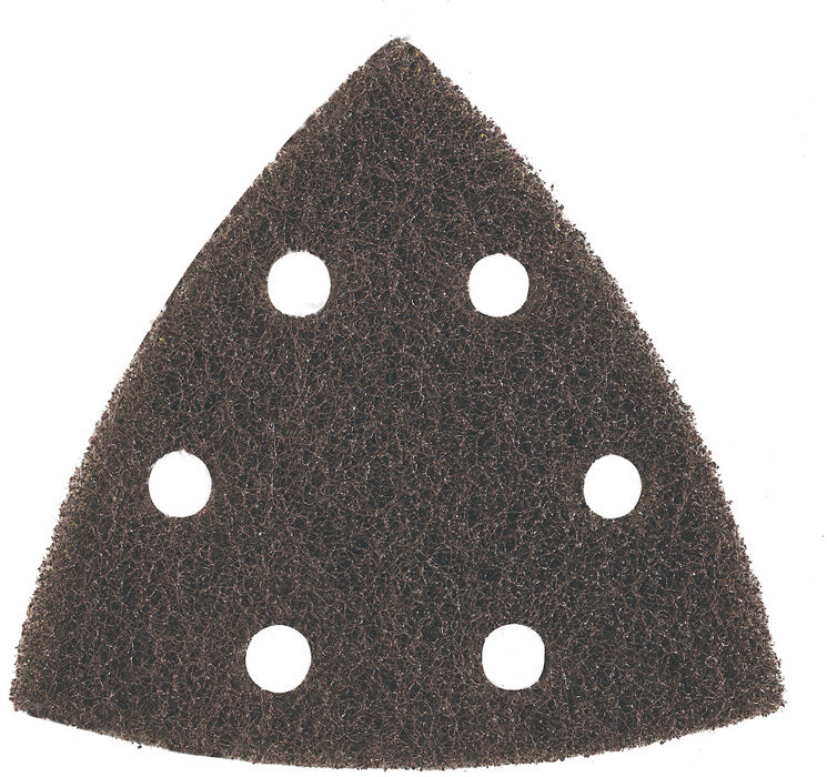 Das gelochte kwb QUICK-STICK Schleifdreieck für Delta- und Dreieckschleifer verfügt über eine Velours-Rückseite zur Befestigung auf Haftstütztellern mit Kletthaftbelag von ø 93 mm. Die Körnung der kunstharzgebundenen Scheibe besteht aus Korund. Das Schleifmittel eignet sich ideal zum Mattieren von Metallen und Lacken, Glätten von Holzfasern und Entrosten von Metall.