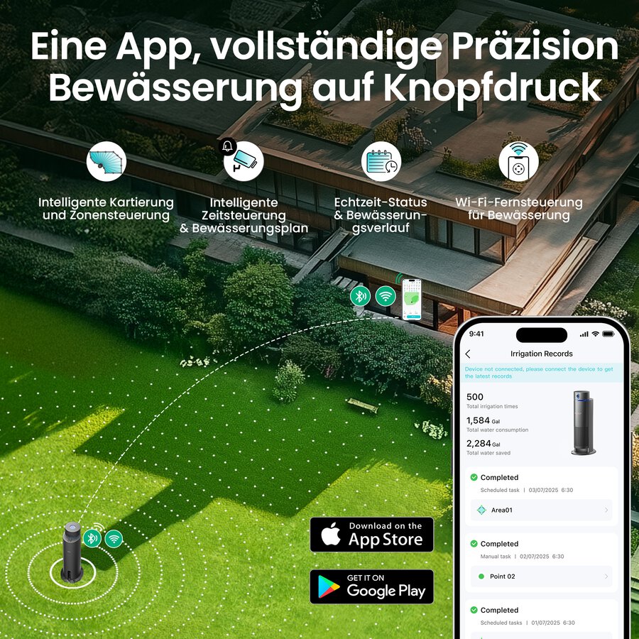 Maßgeschneiderte Kartierung, geplante Bewässerung, B6 Pflanzenspezifische Multi-Zonen-Bewässerung, EvenRain™-Technologie, Abdeckung 445 m²