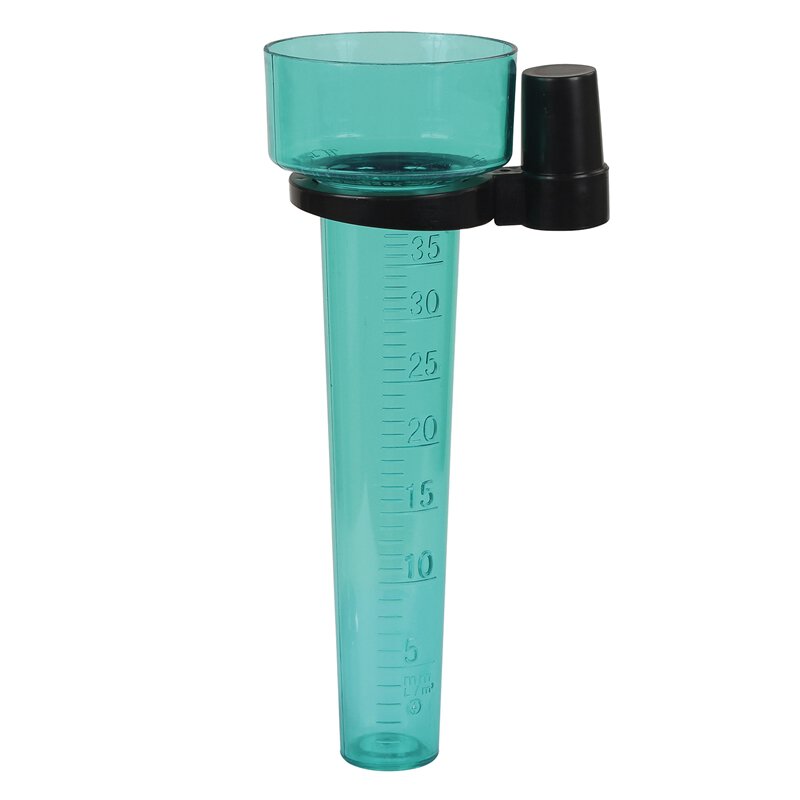Regenmesser 35ml, aus robustem Plastikmaterial (PS+PP), Länge: 24,7cm, Durchmesser: 7,8cm bei Regenaufnahme, Messskala: bis 35ml, Lieferung ohne Haltestab!
