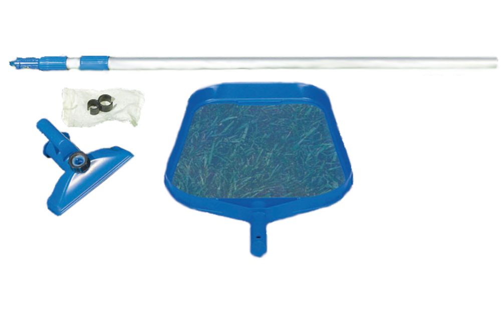 Lieferumfang: Laub- bzw. Bodenkescher, Bodensauger, Filtersack, Aluminium-Teleskopstange, 239 cm lang