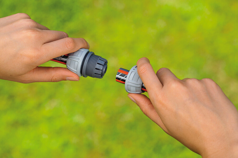 schnelle Schlauchreparatur ohne Werkzeug: beschädigtes Schlauchteil herausschneiden - Reparator einsetzen - fertig!