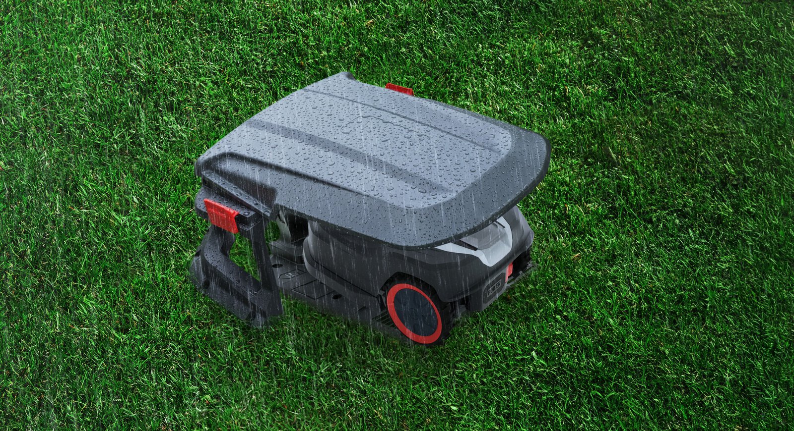 Das Gehäuse besteht aus UV-beständigem Kunststoff, der auch nach Jahren intensiver Sonneneinstrahlung formstabil und funktionssicher bleibt. Die Garage ist dabei so konstruiert, dass der Mähroboter problemlos ein- und ausfahren kann und die gesamten Ladeabläufe ungehindert weiterlaufen. Für den Zugang zur Bedienoberfläche sorgt ein praktischer Klappmechanismus – das Dach lässt sich einfach aufklappen und bleibt dank einer integrierten Rastnase sicher in der geöffneten Position fixiert. So sind Einstellungen, Programmierungen oder eine schnelle Statusprüfung jederzeit bequem möglich, ohne die Garage erst vollständig zu demontieren.