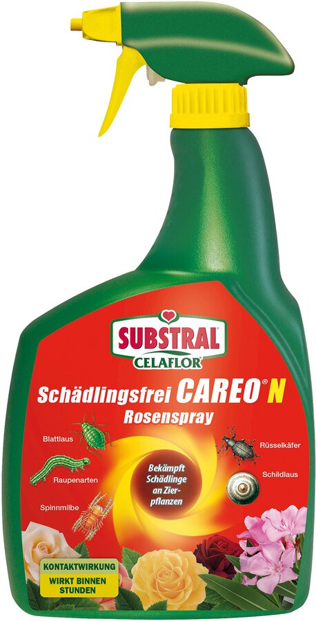 gegen Blattläuse, Spinnmilben, blattfressende Käfer, Schild-, Woll- und Schmierläuse, zur Befallsmilderung bei Befall durch Schmetterlingsraupen, geeignet für Rosen und Zierpflanzen