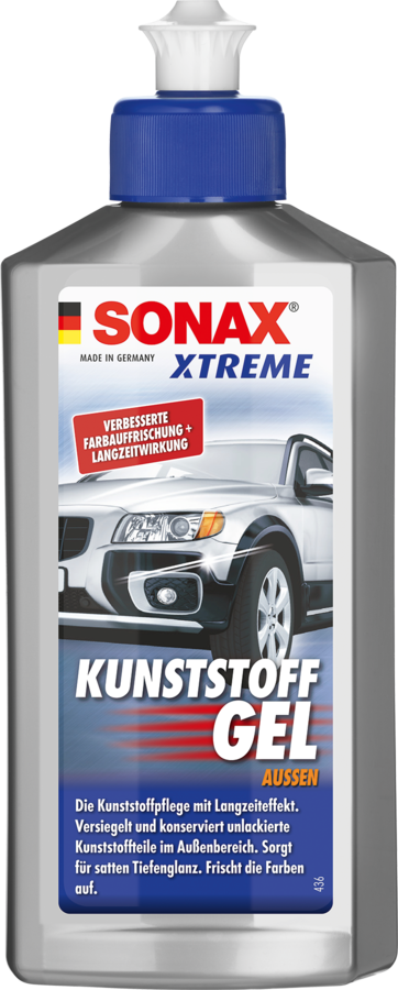 Pflegt unlackierte Kunststoffteile im Außenbereich von Fahrzeugen, z. B. Stoßfänger und Zierleisten. Pflegende Substanzen dringen tief in die Oberflächen ein und schützen effektiv vor Witterungseinflüssen, sowie einer vorzeitigen Alterung. Die behandelten Oberflächen erhalten eine intensive Farbauffrischung und einen tiefen, satten Glanz.