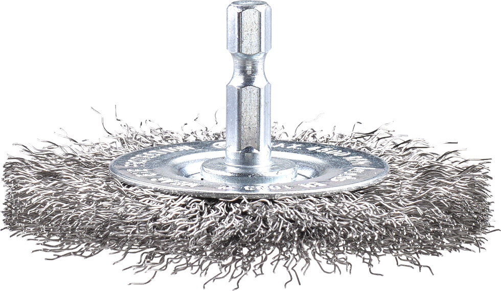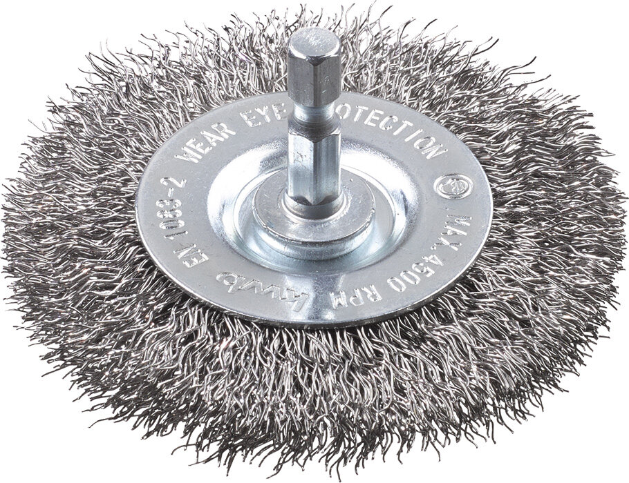Die grobe kwb Scheibenbürste für Bohrmaschinen besteht aus gewelltem V2A Edelstahldraht. Die rostfreie Stahlbürste hinterlässt keine rostanfälligen Rückstände auf dem Werkstück und ist ideal zum Aufrauen und Mattieren, Entrosten, Entgraten, Entlacken, Entzundern und Reinigen von Farben auf schmalen Kanten, Rahmen, Gittern und Rohren sowie im Außenbereich für Edelstahl, Metall, Holz und Stein geeignet.