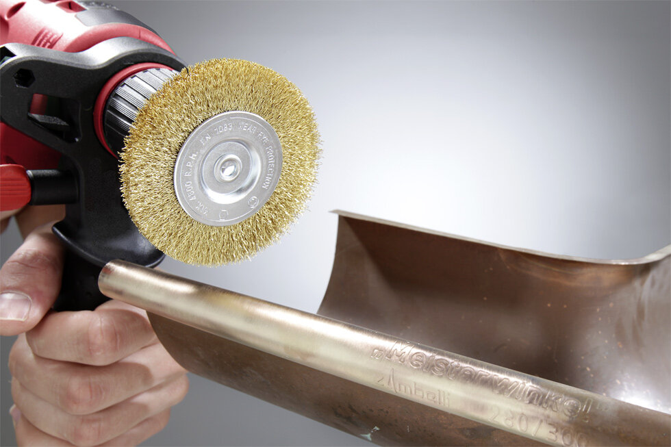 Die feine kwb Scheibenbürste für Bohrmaschinen besteht aus gewelltem Messingdraht. Das Messing verhindert Korrosion auf dem Elektrowerkzeugzubehör und ist ideal für Feinarbeiten sowie zum Reinigen, Entfernen von Farbe, Polieren und Mattieren auf schmalen Kanten, Rahmen, Gittern und Rohren bei Metall und Stein geeignet.