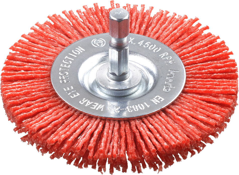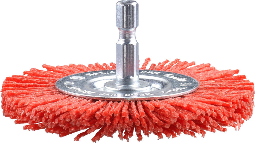 Die grobe kwb Scheibenbürste für Bohrmaschinen hat Borsten aus Schleifnylon. Das Schleifkorn der Bürste besteht aus Aluminiumoxyd. Die Nylonbürste ist ideal zum Strukturieren von Holz, Entfernen von Farbe und Lack sowie Anlassfarbe auf Schweißnähten, an schmalen Kanten, Rahmen, Torpfosten, Gittern und Rohren, bei rostfreiem Stahl, Metall, Buntmetall, Nichteisenmetall und Holz geeignet.