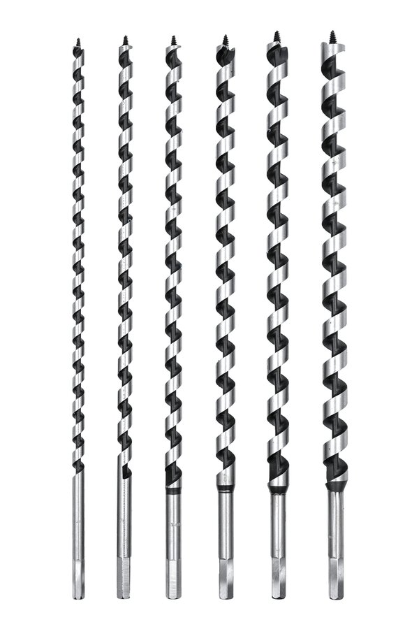Schlangenbohrersatz von kwb punktet mit Qualität und cleveren Funktionen. Er enthält 6 Bohrer in den Durchmessern 10, 12, 14, 16, 18, 20 mm. Die Bohrlochtiefe der 460 mm langen Bohrer kann bis zu 380 mm betragen. Eine selbstanziehende Gewindespitze sorgt für einen schnellen Bohrfortschritt bei nur geringem Kraftaufwand, geschliffener CV-Stahl für hohe Standzeiten und eine lange Lebensdauer. Mit diesen Eigenschaften lassen sich präzise Bohrlöcher etwa in Holzbalken und bei Dachstuhlarbeiten mühelos umsetzen. Die Schlangenbohrer dieses Sets passen in alle gängigen Bohrmaschinen mit Sechskant-Aufnahme. Sind die Bohrer nicht im Einsatz, lassen sie sich im praktischen Blow-Mold-Koffer sicher verstauen.