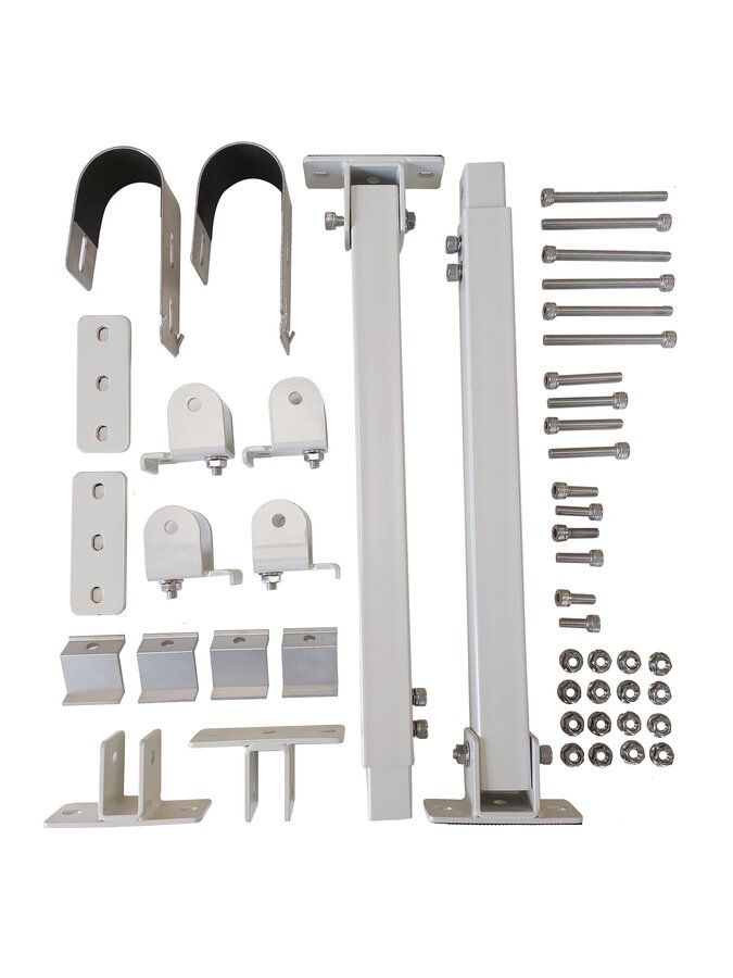 Halterung für zwei Solarpanel Stufenlos einstellbare Neigung bis zu 45° (Panelabhängig) Für Wand-,Boden- und Geländermontage geeignet Passend für die meisten Solarpanel mit Rahmen Weißer Schutzlack für beste Wetterbeständigkeit Mit Geländerhaken aus rostfreien Edelstah Ständer: Abmessung: Innenschiene 30x30mm und Außenschiene 35x35mm. Länge verstellbar: ca. 380mm - 680mm Materialstärke: 2mm Material: Stahl, weiß lackier
