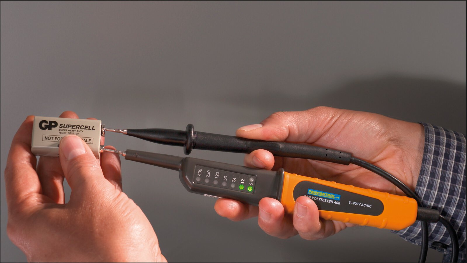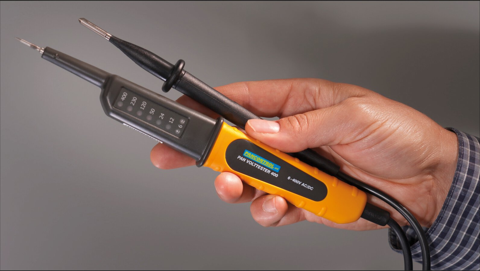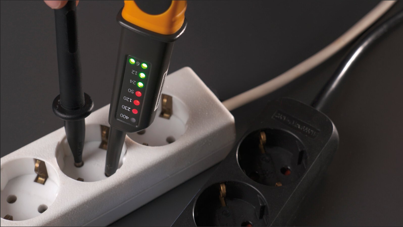 2-polig, Polaritätsanzeige bei Gleichspannung Messkategorie: CAT III 400 V, Anzeige mit 8 LEDs, keine Batterien notwendig