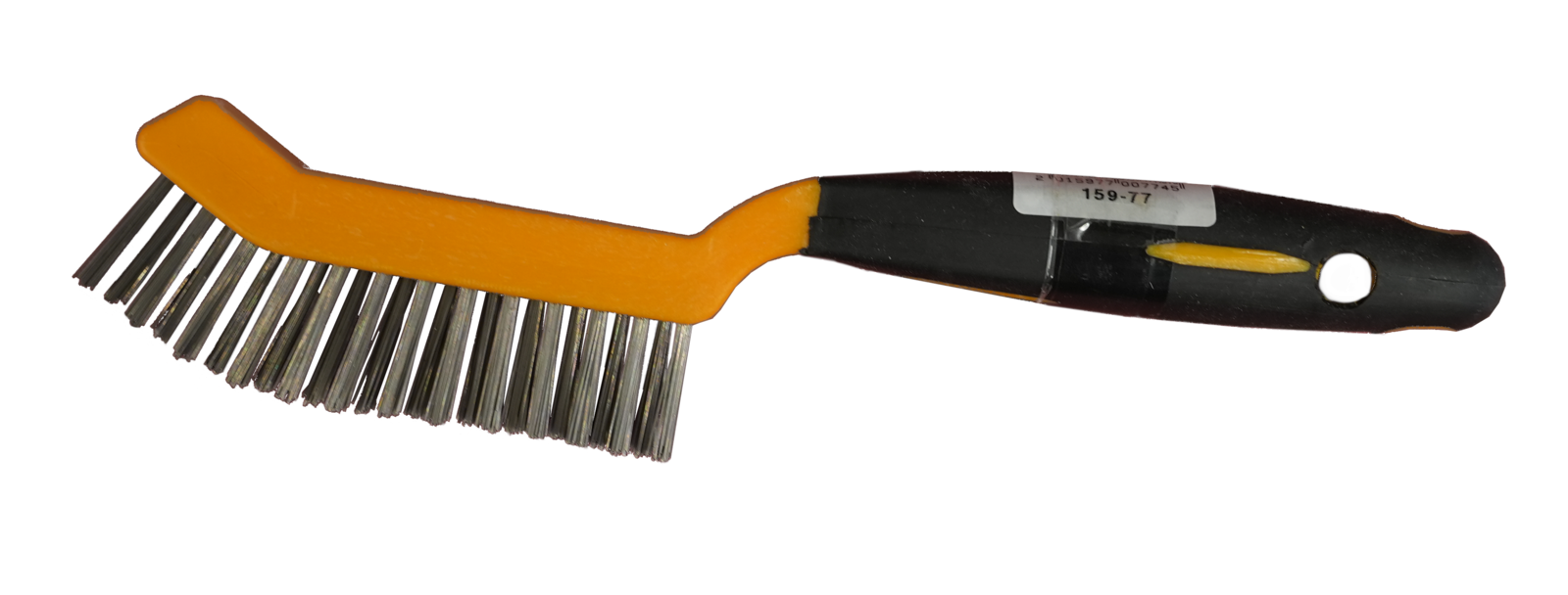ergonomisch geformt mit gummibeschichtetem 2-Komponenten-Griff für ermüdungsfreies Arbeiten, 2-reihig, mit 0,3 mm-Stahldraht, für starke Verschmutzungen, speziell geeignet zur Reinigung von Bremssätteln