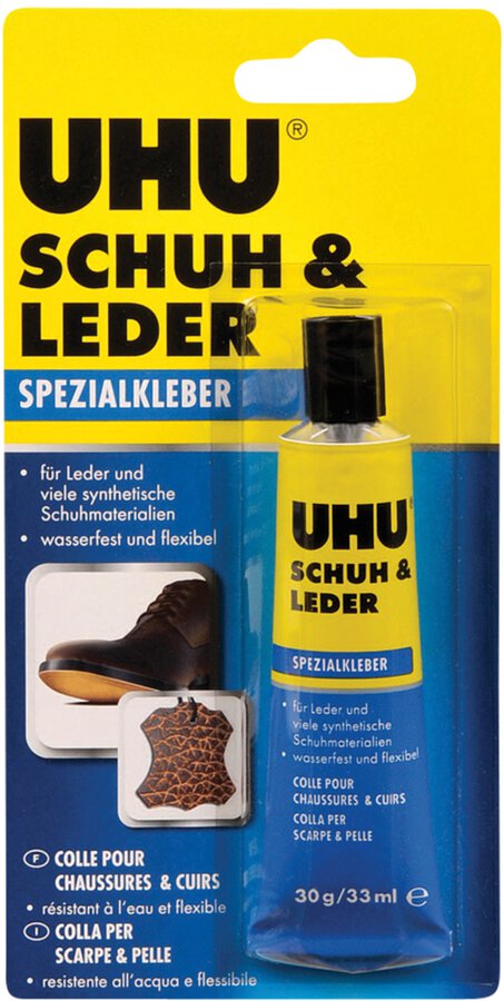 Spezialklebstoff zum Kleben von Leder und Gummi - auch in Kombination mit Metall, Textilien und synthetischen Materialien. Ideal zum Reparieren von Schuhsohlen, Absätzen sowie Reparaturen an Schuhen, Stiefeln und Gürteln.