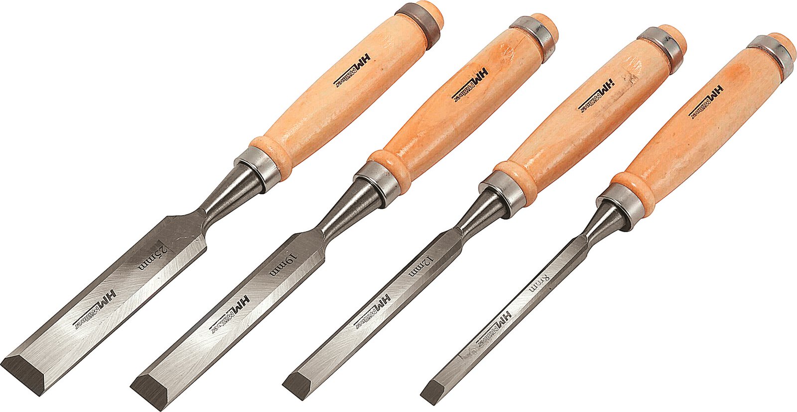 Stechbeitel-Satz, 4-tlg. Klinge aus Werkzeugstahl, Schlagfestes Holzheft, Bestehend aus je 1 Stück. Stechbeitel,