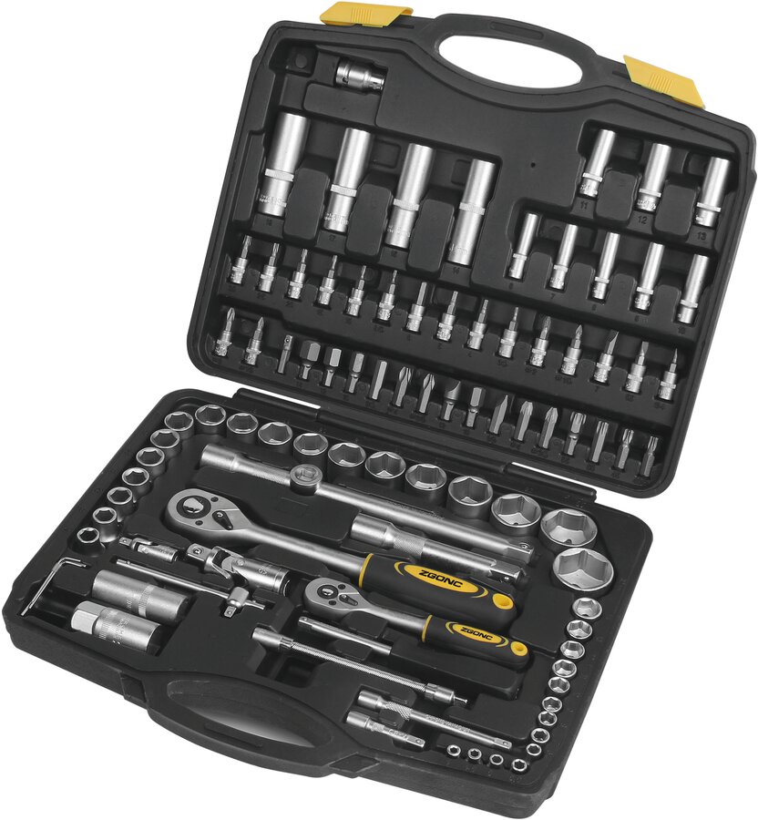 Die zentrale Komponente eines Steckschlüsselsatzes ist die Ratsche. Obwohl einige Stecknusskassetten unterschiedliche Größen von Ratschen enthalten, ist es wichtig zu überlegen, welche Größe am besten zu den individuellen Bedürfnissen passt. Mehrere Ratschen bedeuten auch jeweils einen Satz Stecknüsse für die entsprechende Größe, was den Umfang und das Gewicht des Steckschlüsselsatzes erhöht. Ein hochwertiger Ratschenkasten enthält normalerweise eine Umschaltknarre guter Qualität, die für den professionellen Einsatz mit einem stabilen und präzisen Mechanismus ausgestattet ist, der auch bei längerem Gebrauch nicht ausleiert. Hochwertige Ratschen sind auf Langlebigkeit ausgelegt und werden aus poliertem Chrom-Vanadium-Stahl gefertigt.