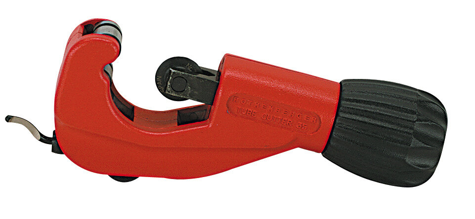 6 - 35 mm, für Kupfer- und Weichstahlrohr, geschützte Gewindespindel, versenkbarer Innenentgrater mit drehbarer Klinge, inkl. Ersatz-Schneidrad im Griff