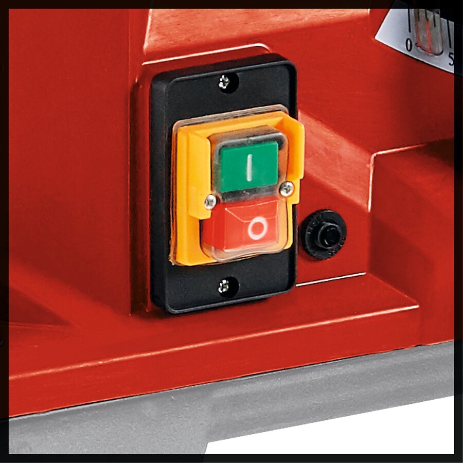 leicht einklappbares Untergestell mit Trolleyfunktion, Softstart, Alu-Haupttisch, pulverbeschichtete Tischverbreitung, transparenter Sägeblattschutz, Zubehör- und Kabelhalterung