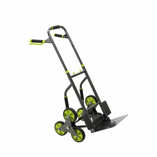 120 kg Tragfähigkeit der flachen Oberfläche 120 kg Tragfähigkeit beim Treppensteigen Lässt sich leicht auf ein praktisches Tragemaß zusammenfalten Komfortable Griffe aus weichem Gummi mit Handschutz Schwerlast-TPR-Rollen