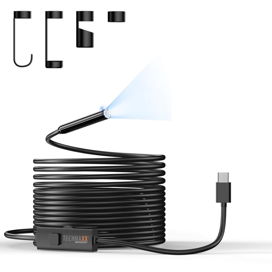 Auflösung 1MP / 25 Bilder pro Sekunde IP 67 Zertifiziert 8 dimmbare LED-Leuchten 5m semiflexibles Kabel Kostenfreie App 70° Weitwinkel Foto- und Videoaufnahme in MP4 / JPG Mit Haken, Spiegel und Magnetaufsatz