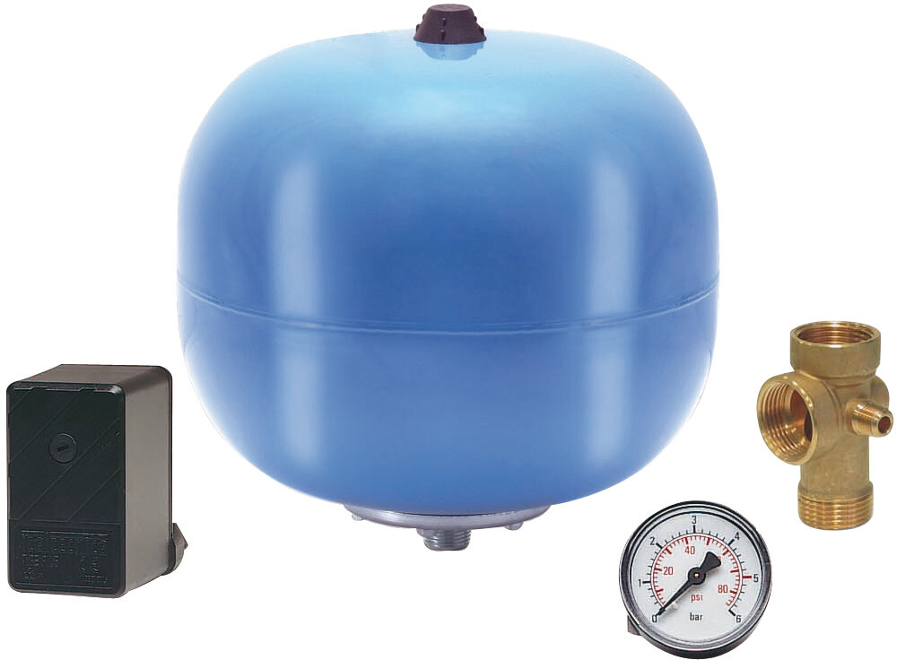 24 l-Druckbehälter mit Gummi-Membran, Hydrosphäre + Manometer + Druckschalter + Apparateträger