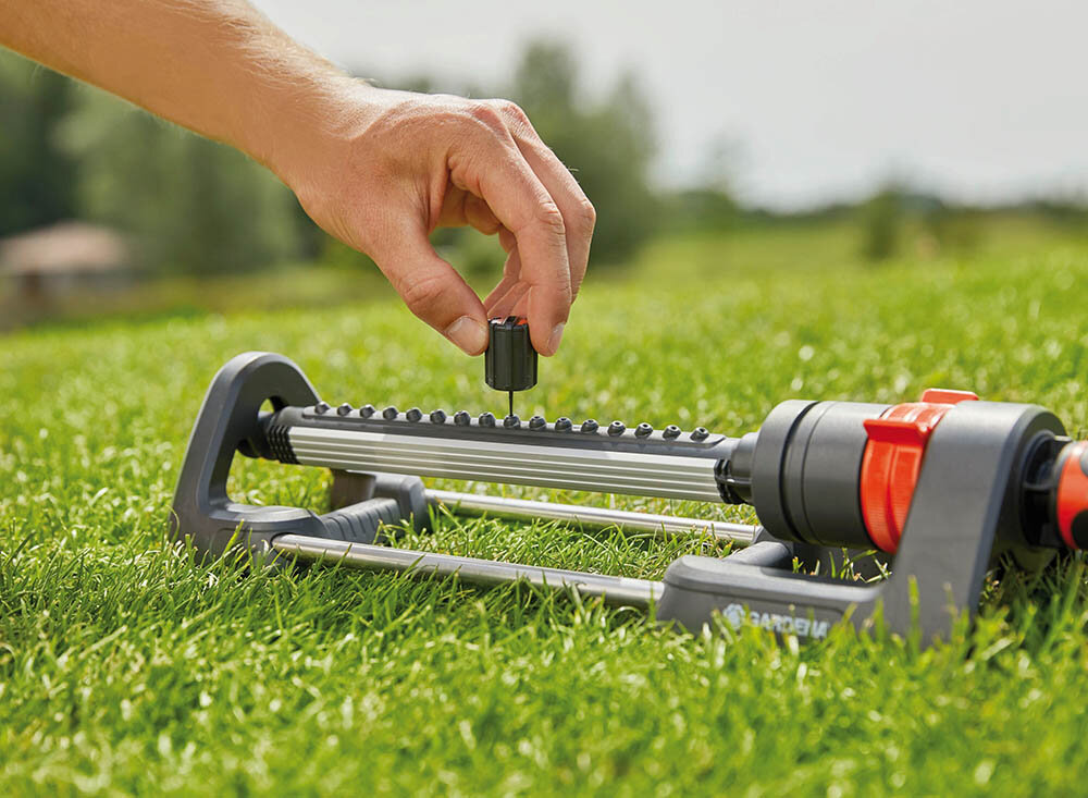 zur gleichmäßigen Bewässerung von rechteckigen und quadratischen Rasenflächen, bruchsichere, aluminiumverstärkte Düsenrohre, innen liegender Metallfilter, frost- und witterungsbeständig, "Made in Germany"